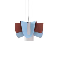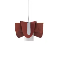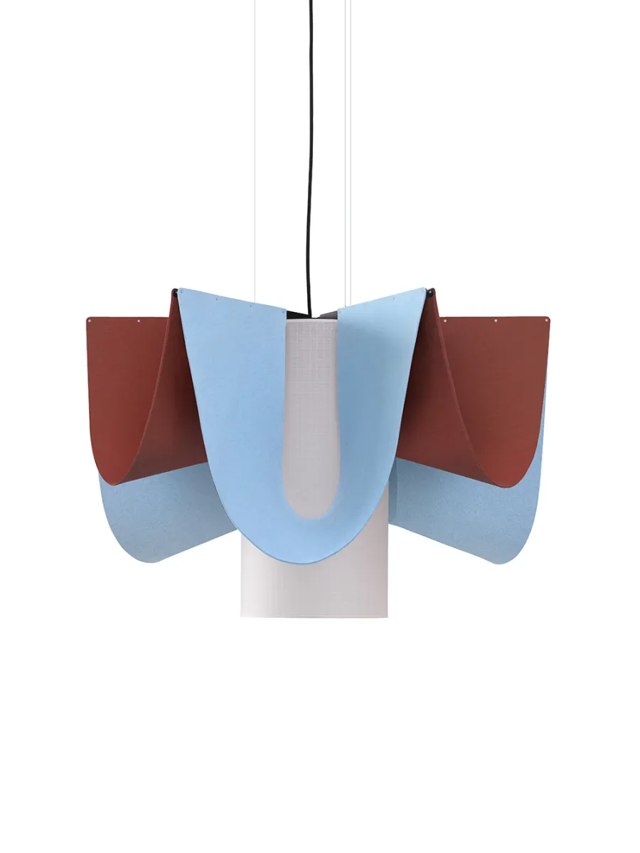 Inspired by mythology, Ondine symbolizes the fluid grace of water. The name reflects the poetry of a luminaire with arctic blue and chilli red felt waves that unfurl through space in an undulation, absorbing unwanted noise.