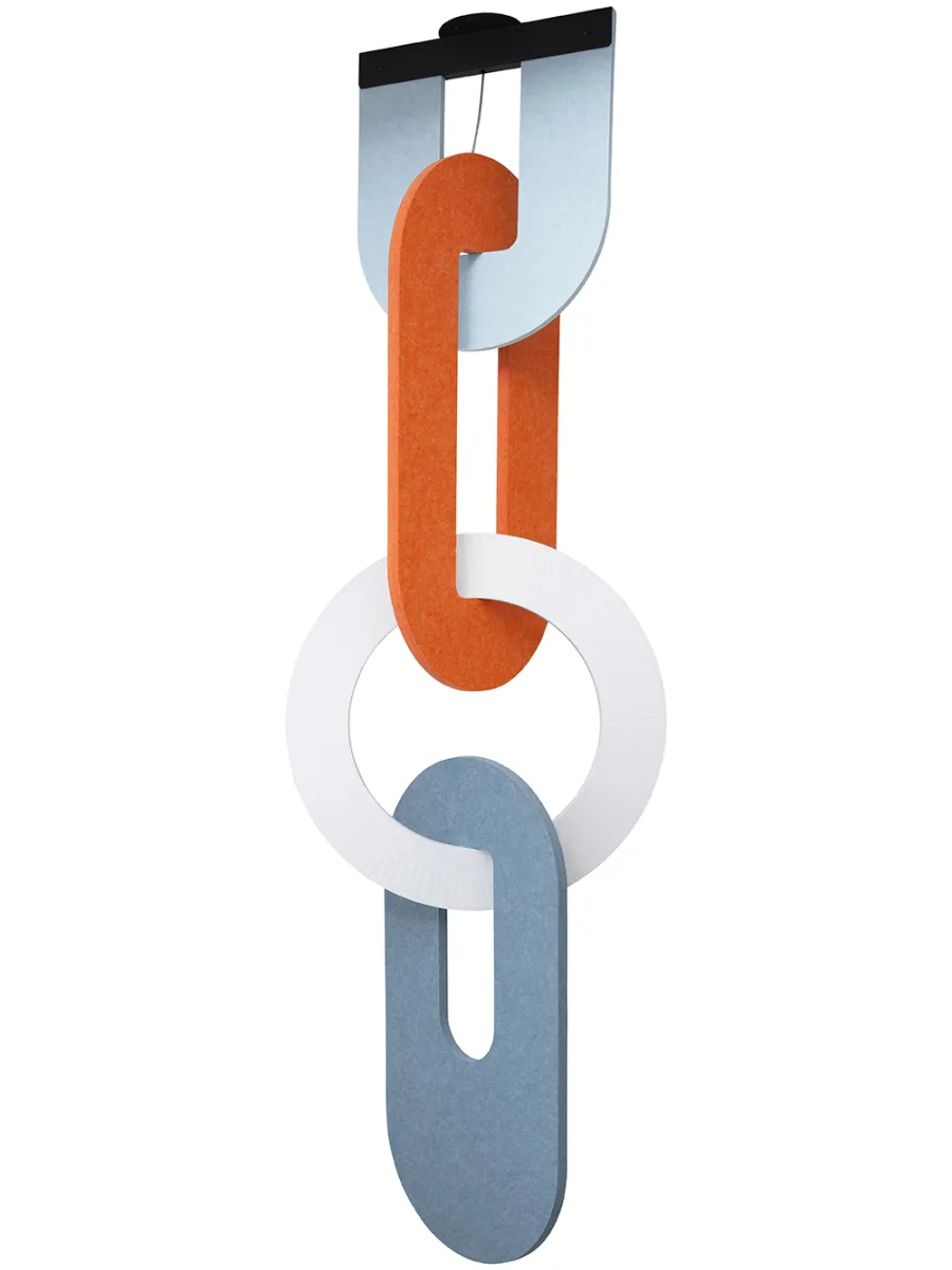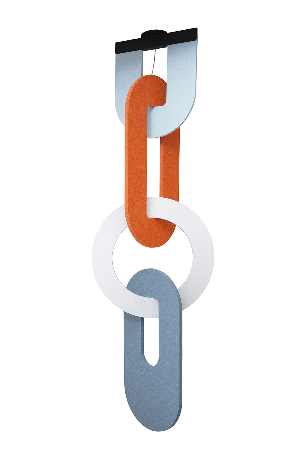 Composed of a variety of luminous acoustic rings, this modular suspended chain can be adapted in height to suit any space: from a simple office with a few modules, to huge spaces with numerous modules.