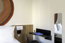 Escale fait écho à l’art de recevoir et d’accueillir en proposant des solutions multifonctionnelles avec un design axé sur le bien être. Ses courbes douces et l’harmonie de ses proportions, en font un luminaire cocooning où le confort rencontre la praticité. Une collection particulièrement adaptée aux besoins de l’hôtellerie. Pourvu d’une tablette légèrement inclinée pour poser son smartphone et d’un port USB, Escale apporte une réponse complète à nos habitudes connectées. L’applique existe en deux versions, l’une avec abat-jour seul et port USB, l’autre avec également une liseuse LED. La version LED (gauche et droite) possède un double interrupteur et est particulièrement recommandée pour une lecture confortable avec ou sans l’éclairage de la lampe principale.