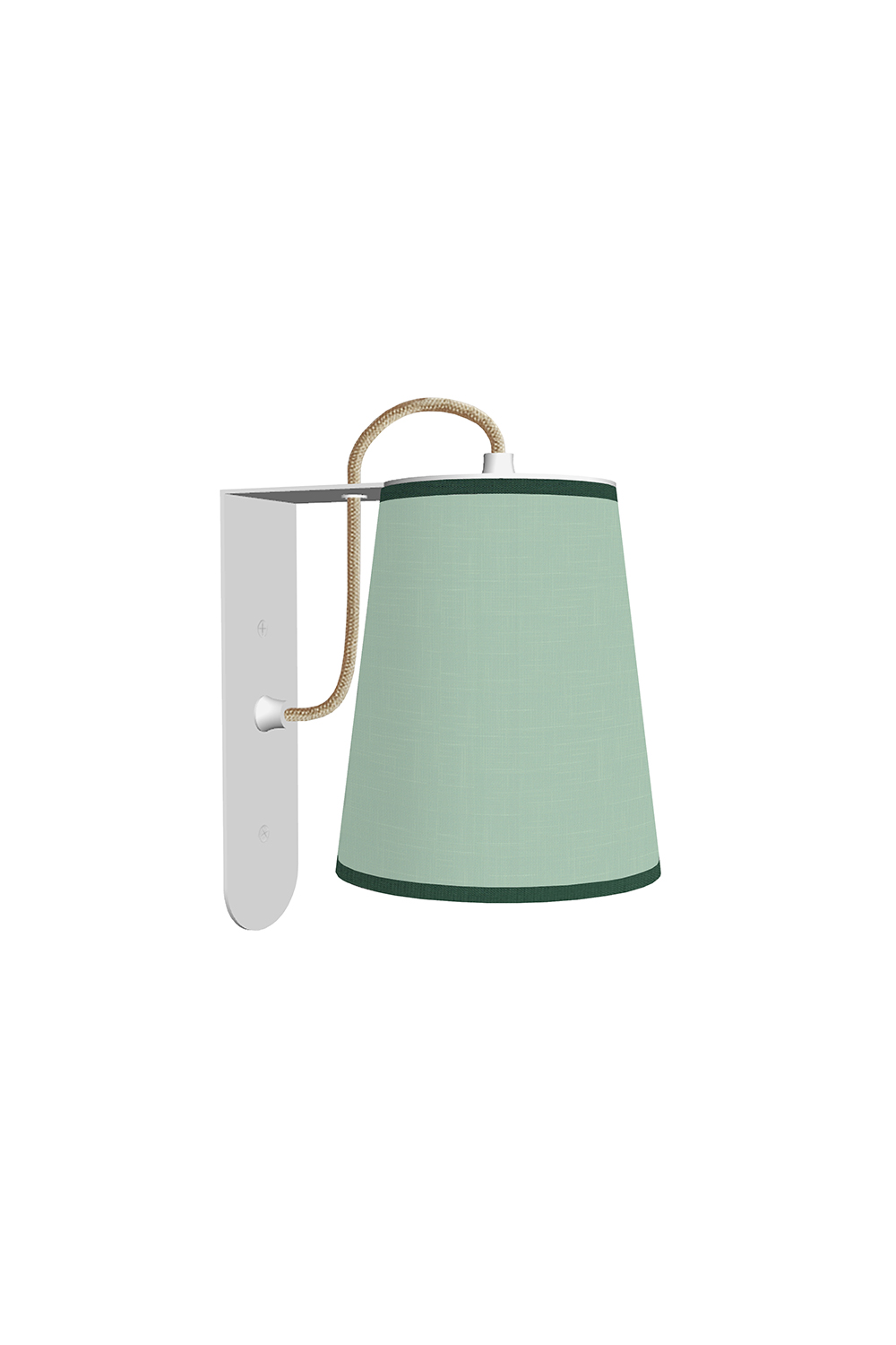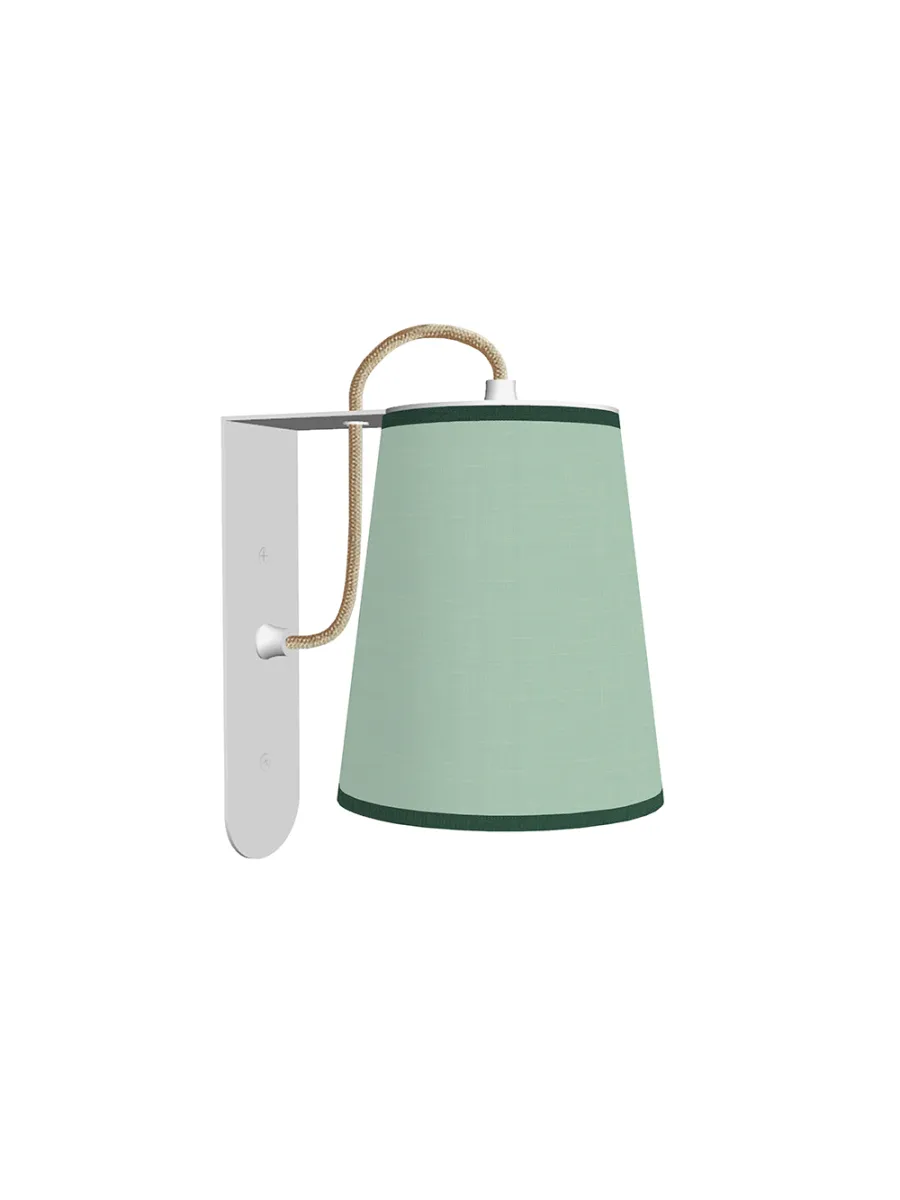 Conçue pour s’installer directement sur un boîtier électrique mural standard, l’applique Grand Lightbook se fixe simplement au mur grâce à sa structure en équerre qui en masque parfaitement l’alimentation. Son abat-jour en lin aquamarine diffuse une lumière douce et apaisante, tandis que son liseré vert apporte une touche fraîche et contemporaine.