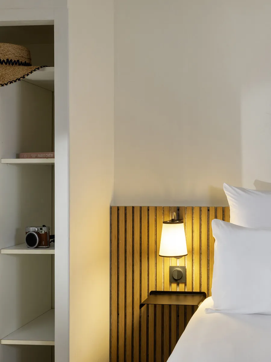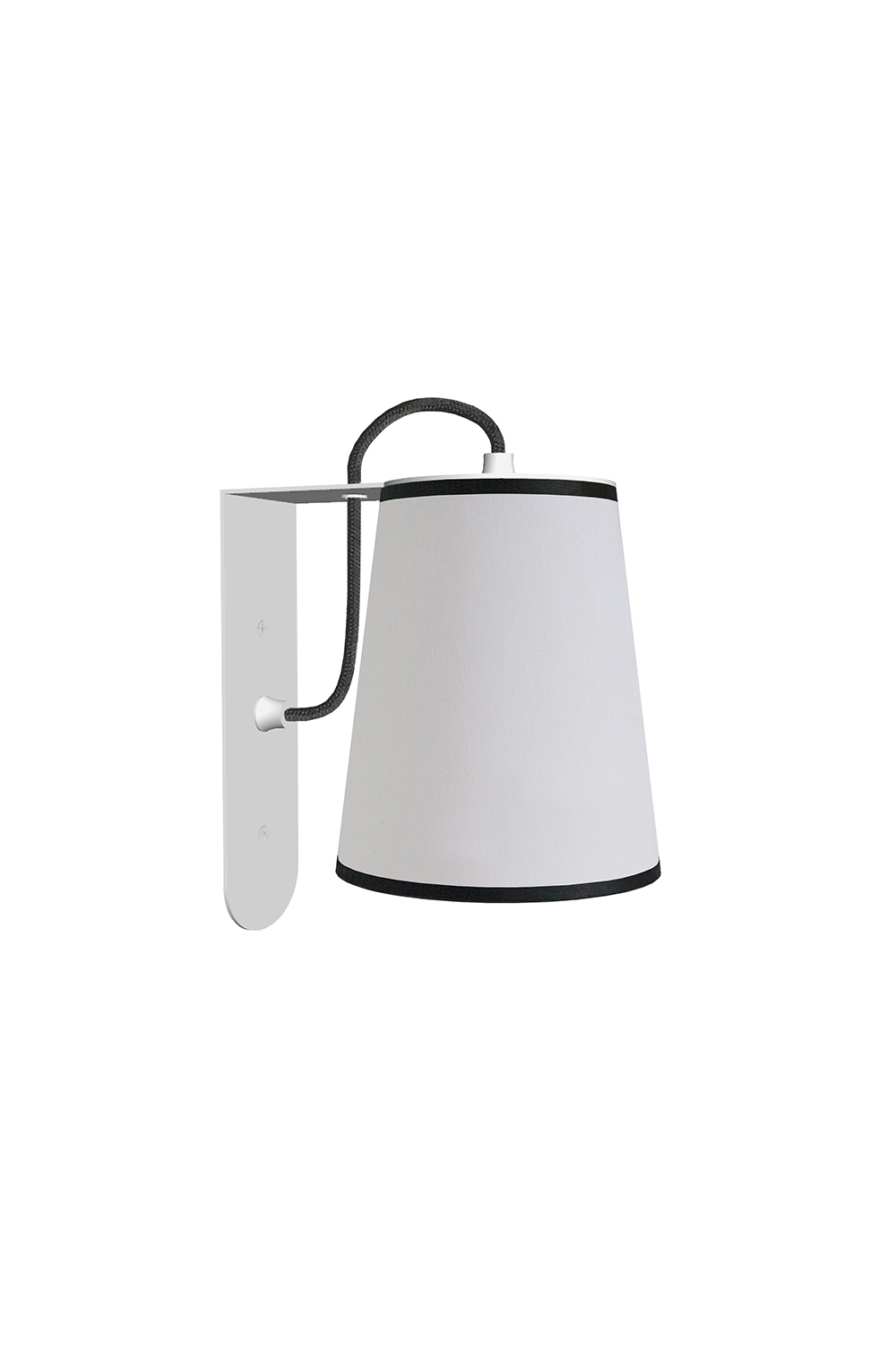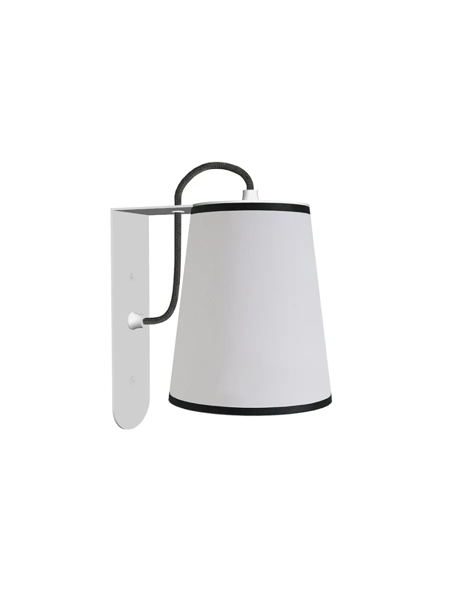Conçue pour s’installer directement sur un boîtier électrique mural standard, l’applique Grand Lightbook se fixe simplement au mur grâce à sa structure en équerre qui en masque parfaitement l’alimentation. Son abat-jour en tissu blanc diffusant offre une lumière douce et chaleureuse, tandis que son liseré noir apporte une touche graphique et contemporaine.