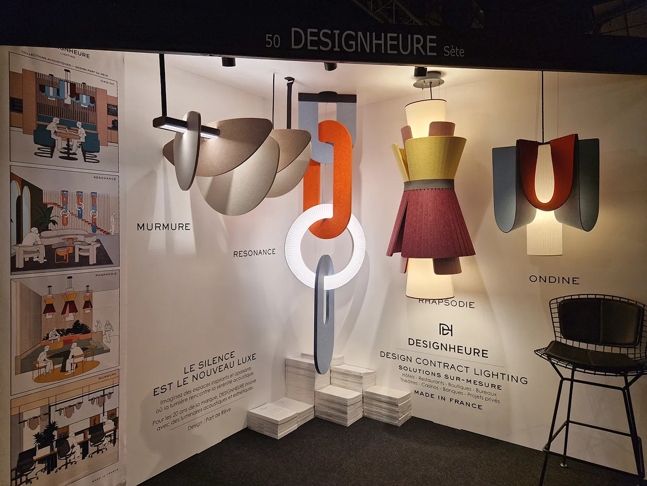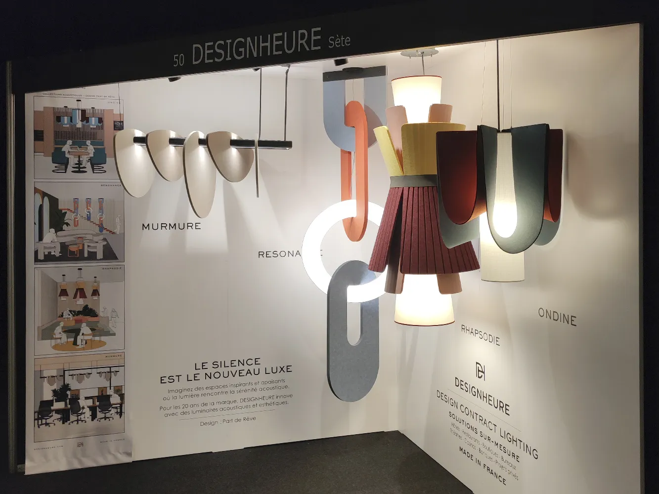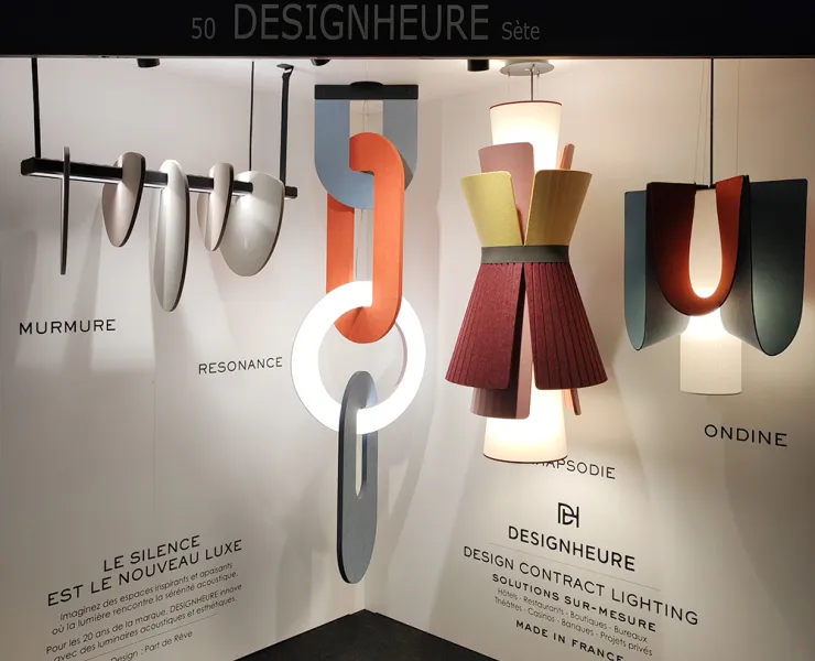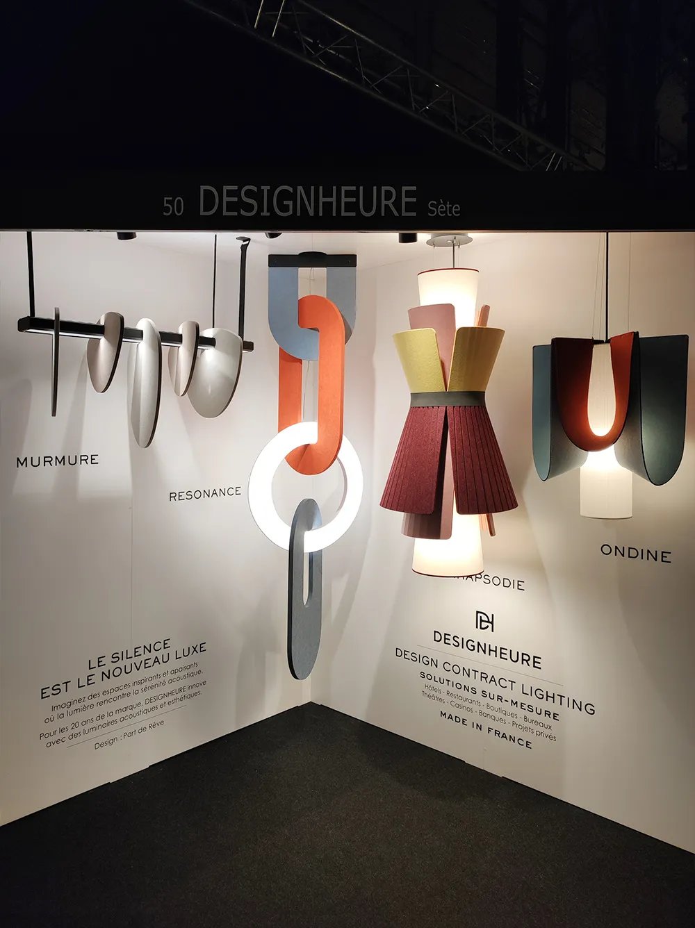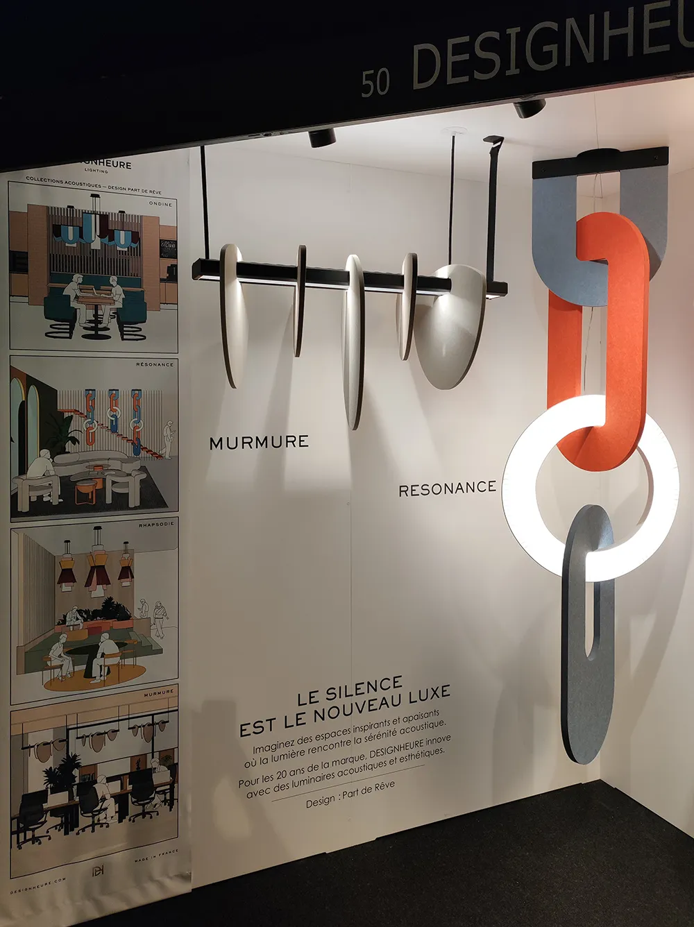 DESIGNHEURE vous accueillait sur son stand pour vous présenter ses nouveaux luminaires acoustiques, conçus par les designers de l'agence Part de Rêve.
