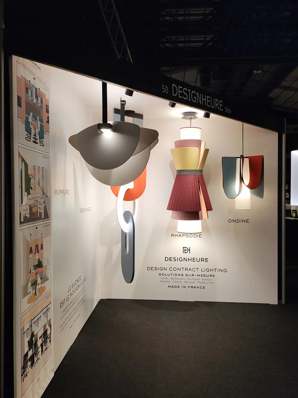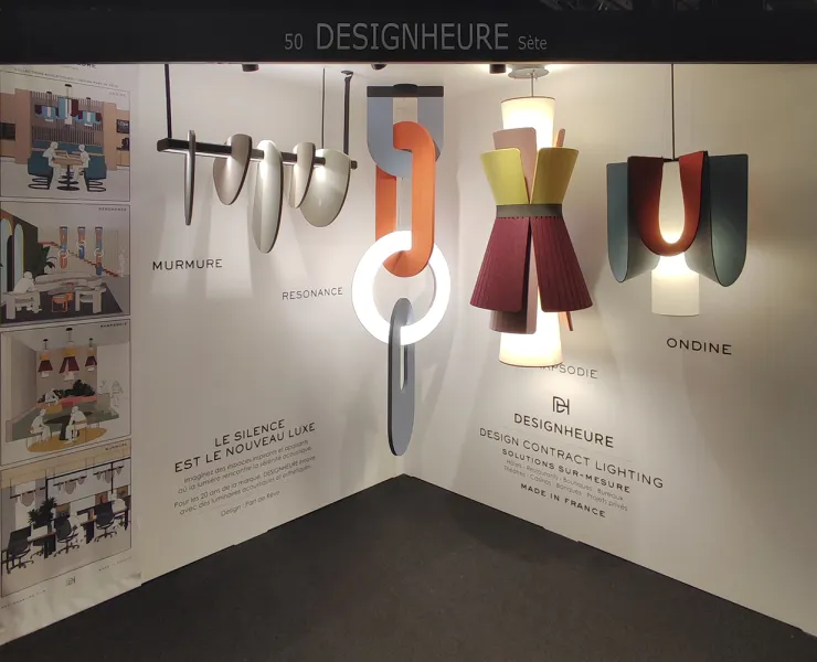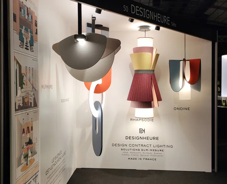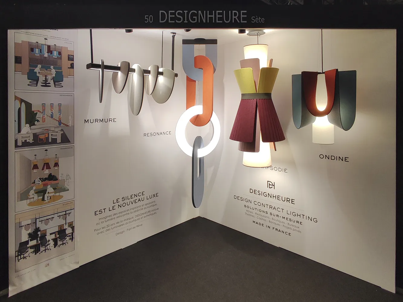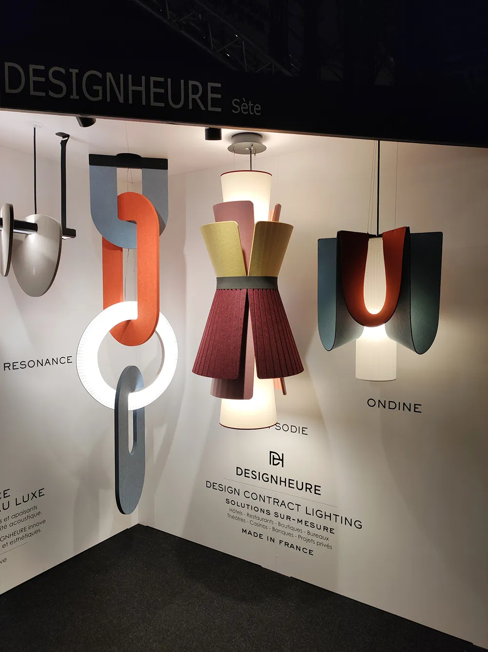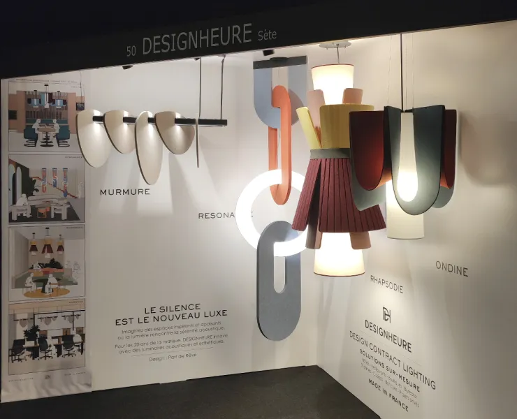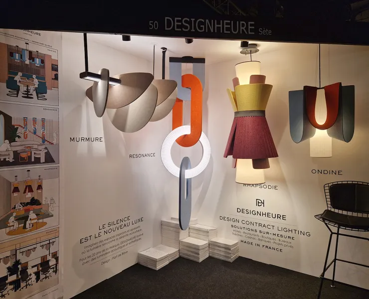 DESIGNHEURE vous accueillait sur son stand pour vous présenter ses nouveaux luminaires acoustiques, conçus par les designers de l'agence Part de Rêve.