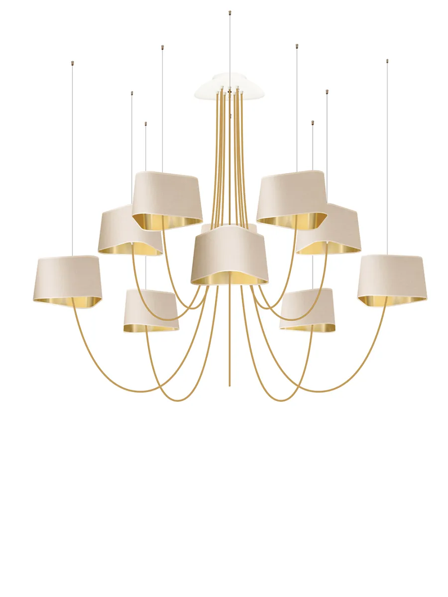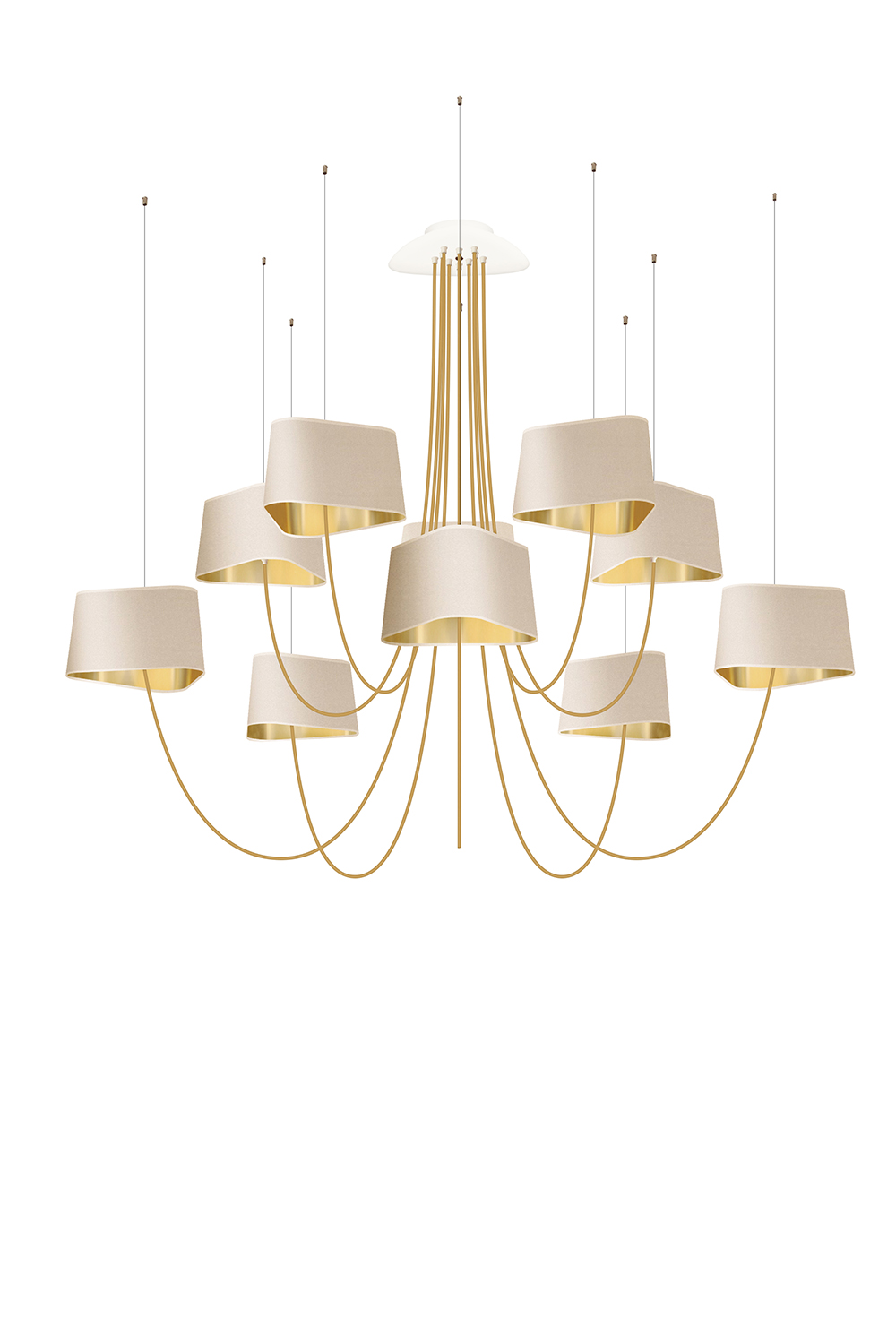 The Nuage collection is available in five lampshade sizes, and in a wide range of models: table lamps, floor lamps, wall lamps, pendant lamps and chandeliers.