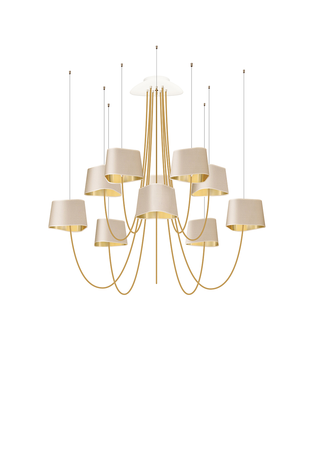 The Nuage collection is available in five lampshade sizes, and in a wide range of models: table lamps, floor lamps, wall lamps, pendant lamps and chandeliers.
