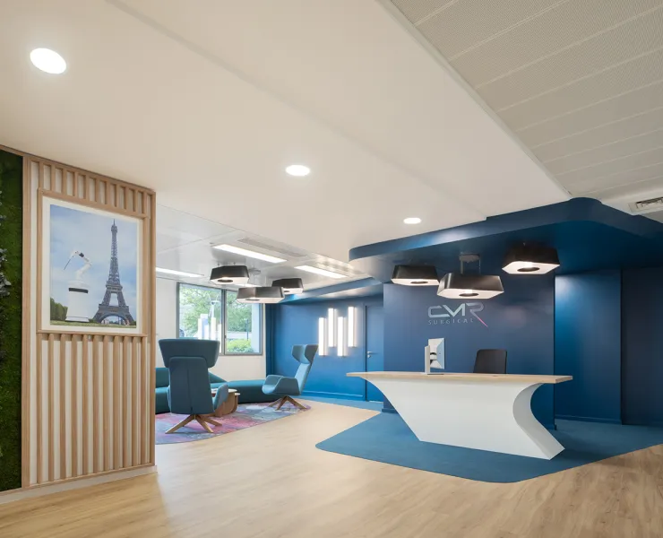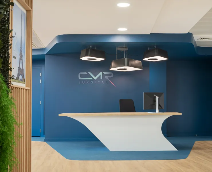 DESIGNHEURE a réalisé la mise en lumière des nouveaux locaux de CMR Surgical, spécialiste de dispositifs médicaux, pour le projet mené par l'agence Kubik.