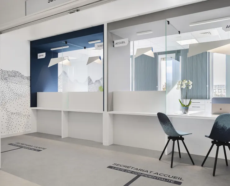 Dans ce cabinet médical entièrement repensé par Lucie HORTALA, l’aménagement du secrétariat place l’accueil, la fluidité et le bien-être au centre du projet. Les espaces ont été restructurés pour améliorer la gestion des flux patients, offrir un meilleur confort d’usage aux équipes médicales et instaurer une atmosphère plus lumineuse, apaisante et accueillante.