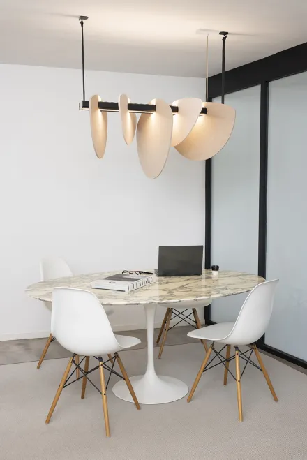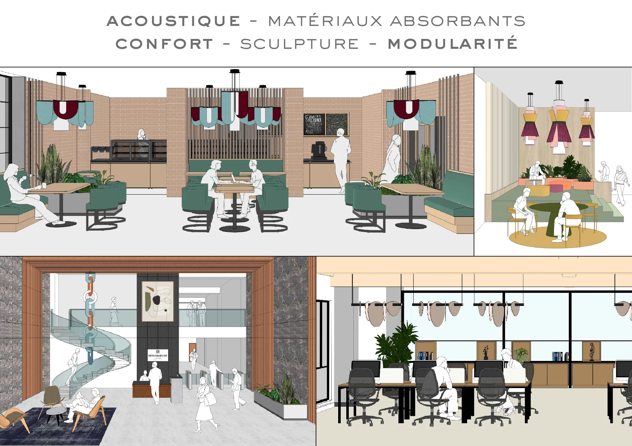 By combining sculptural shapes and absorbent materials, this collection, rich in varied forms, redefines comfort in the workplace. It creates spaces where light and silence intertwine to improve employees' quality of life...