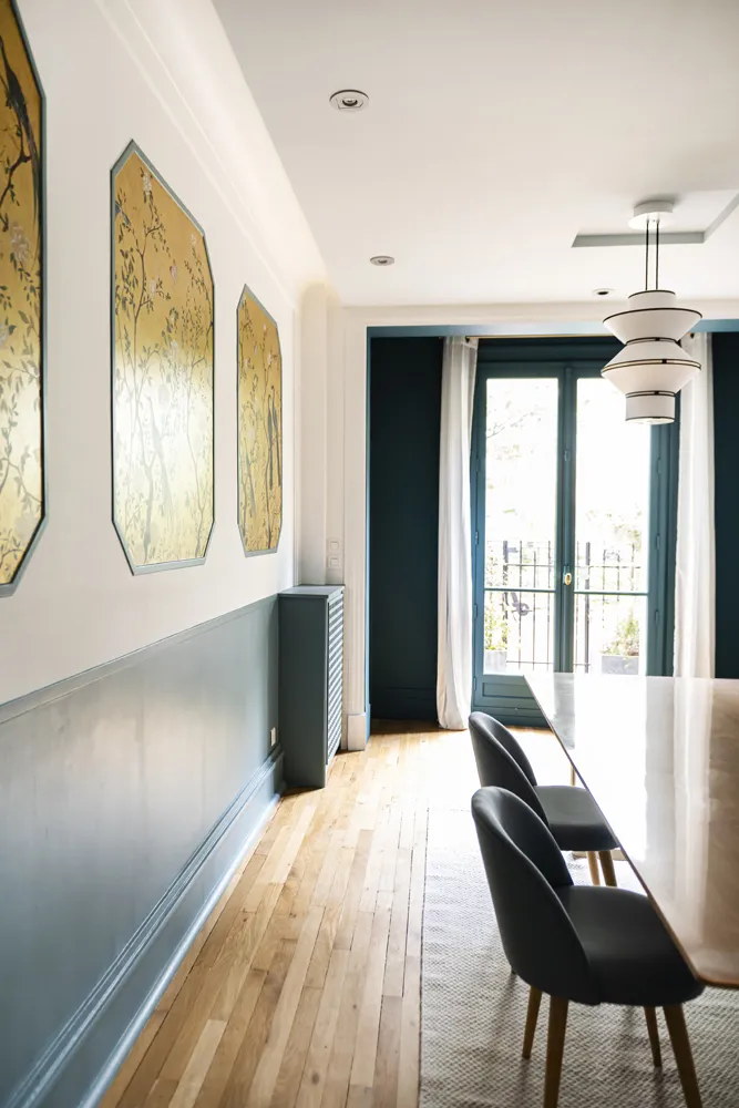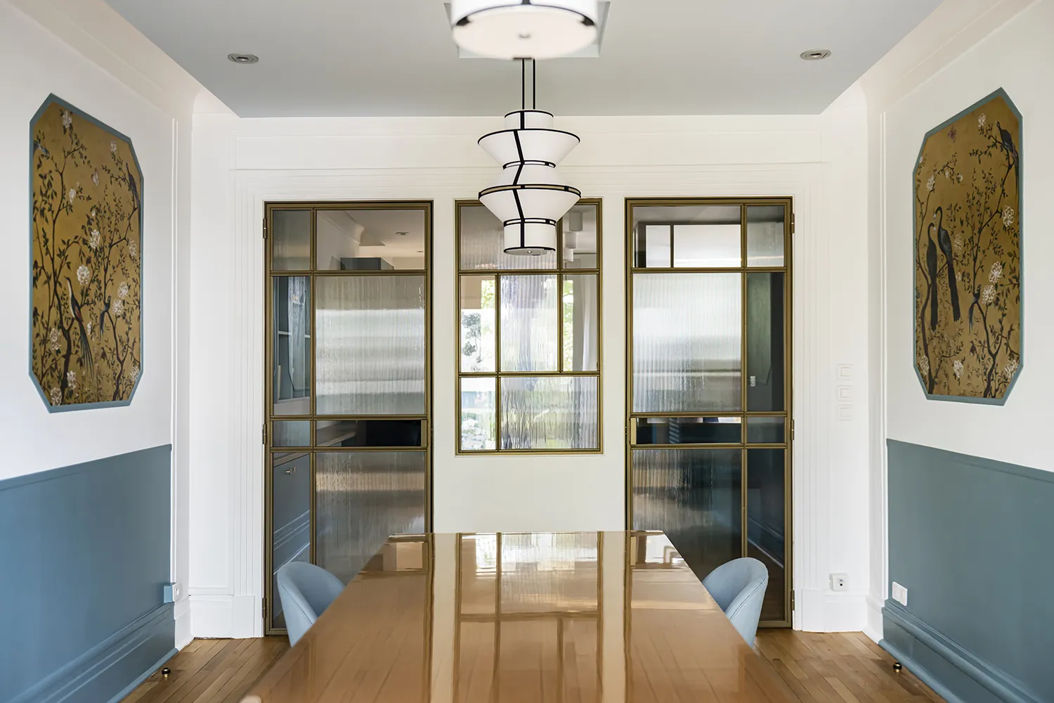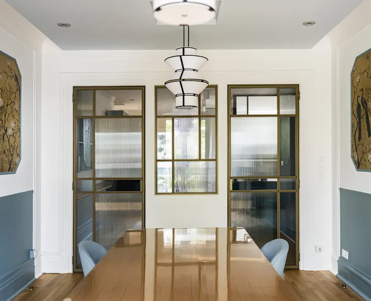 In this notary’s office, renovated by Atelier Compostelle, the design strikes a subtle balance between heritage and modernity. Mouldings, decorative details with Japanese influences, and the use of brass and glass combine to create a refined setting, steeped in history and elegance.