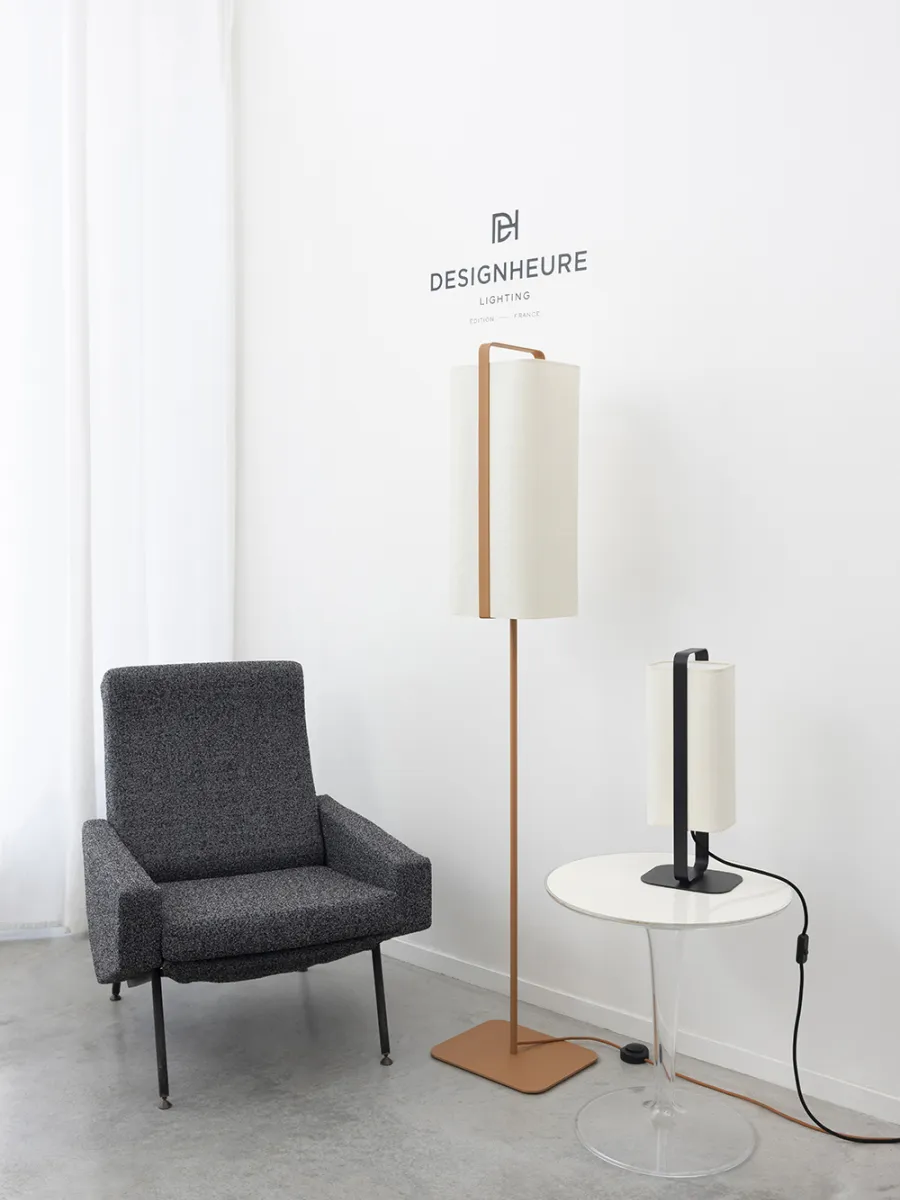 For this collection with its slender design, DESIGNHEURE highlights the textile material at the heart of its brand identity: the lampshades are staged like paintings, framed by a fine steel armature. Twiggy's elongated line and subdued halo of light evoke the glow of a candle: a soft, soothing light.