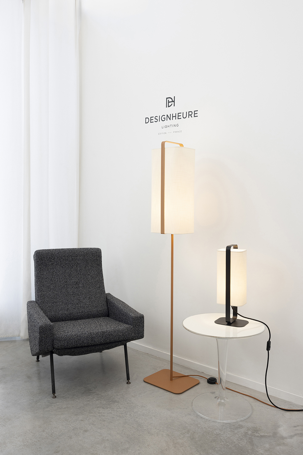 For this collection with its slender design, DESIGNHEURE highlights the textile material at the heart of its brand identity: the lampshades are staged like paintings, framed by a fine steel armature. Twiggy's elongated line and subdued halo of light evoke the glow of a candle: a soft, soothing light.