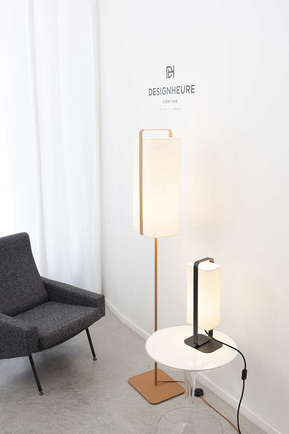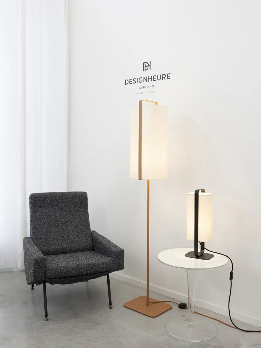 For this collection with its slender design, DESIGNHEURE highlights the textile material at the heart of its brand identity: the lampshades are staged like paintings, framed by a fine steel armature. Twiggy's elongated line and subdued halo of light evoke the glow of a candle: a soft, soothing light.