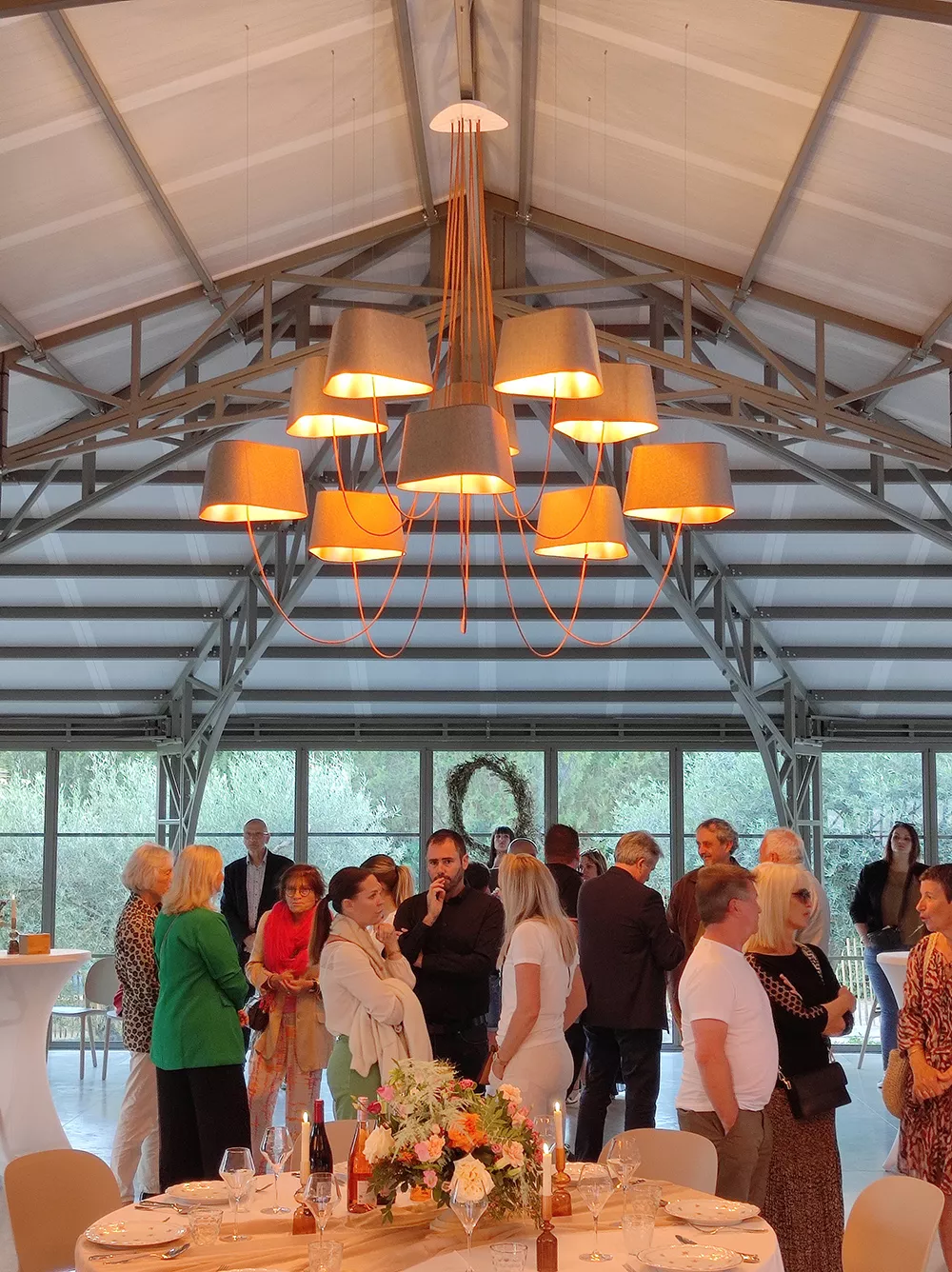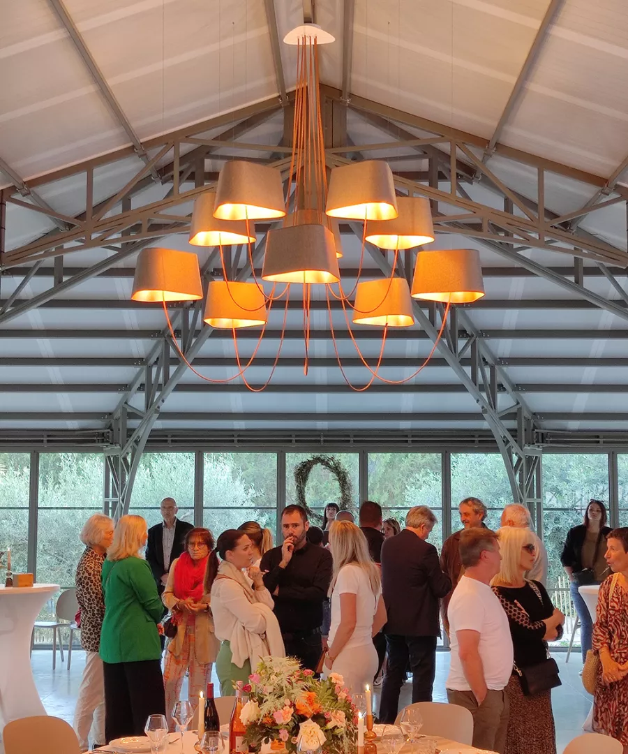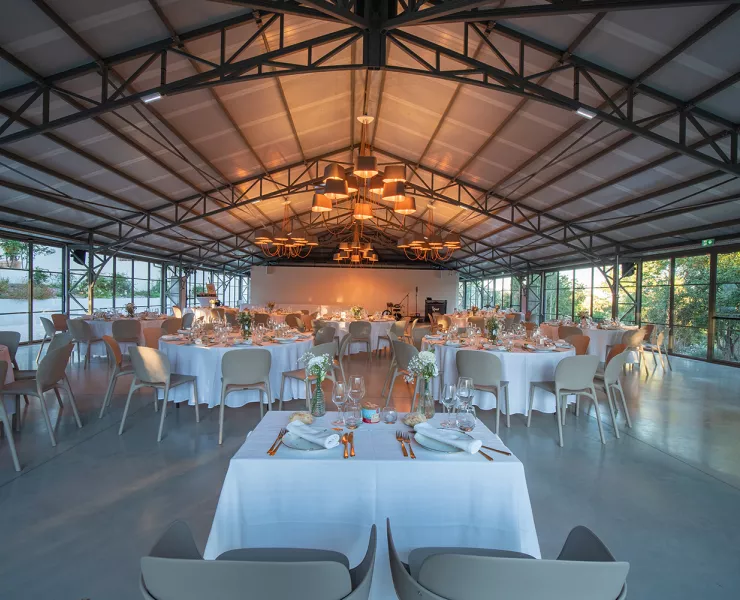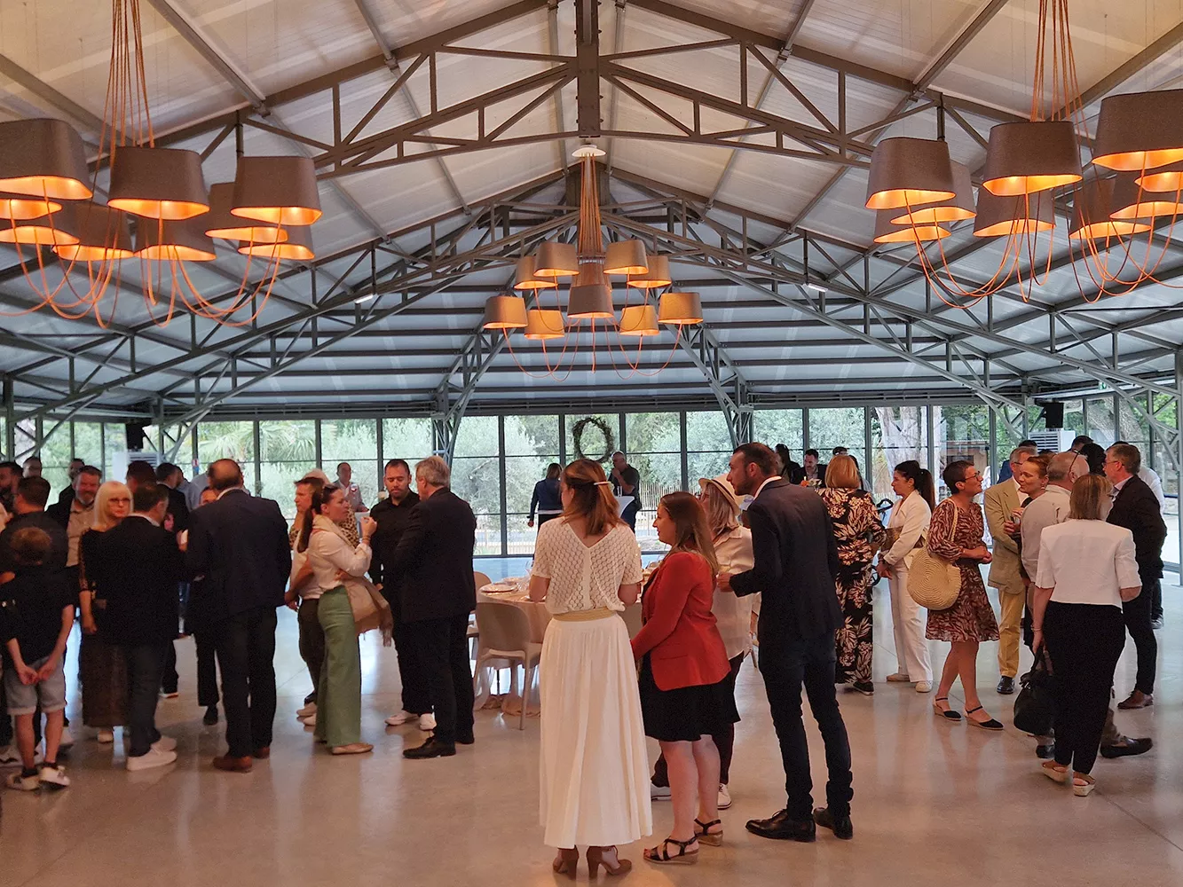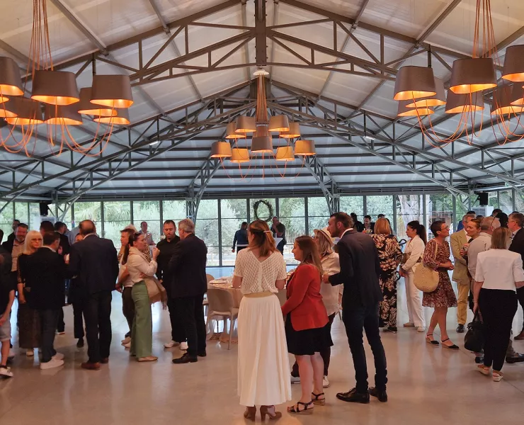 L'Orangerie du Mas Aubrilha offre un espace de réception singulier, dont l'architecture vitrée s'allie harmonieusement avec le métal, permettant de créer un espace ouvert sur le parc centenaire de 6 hectares.