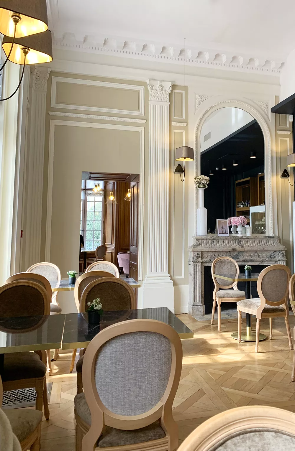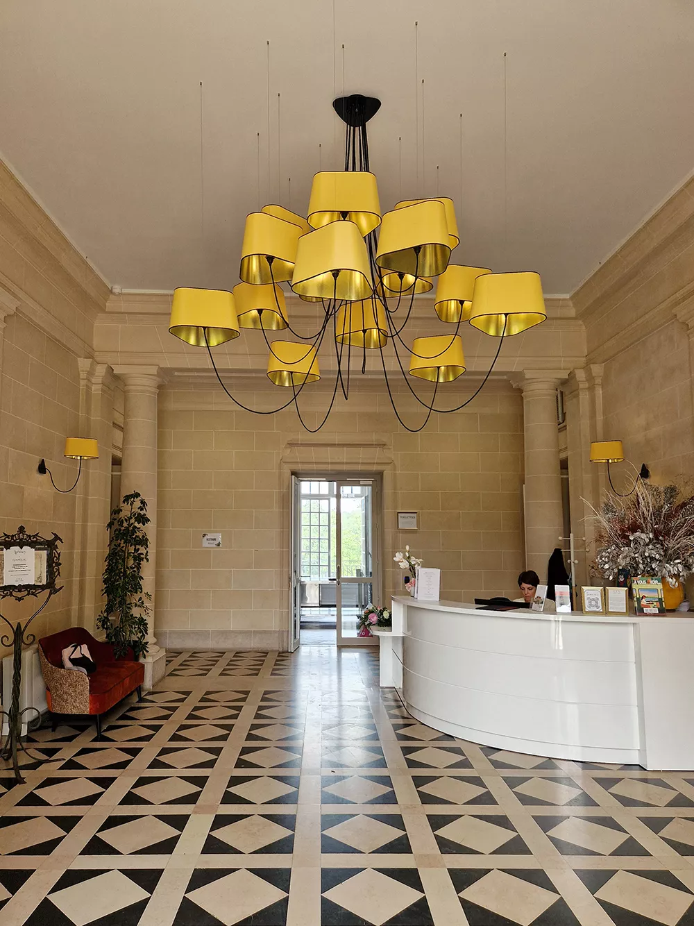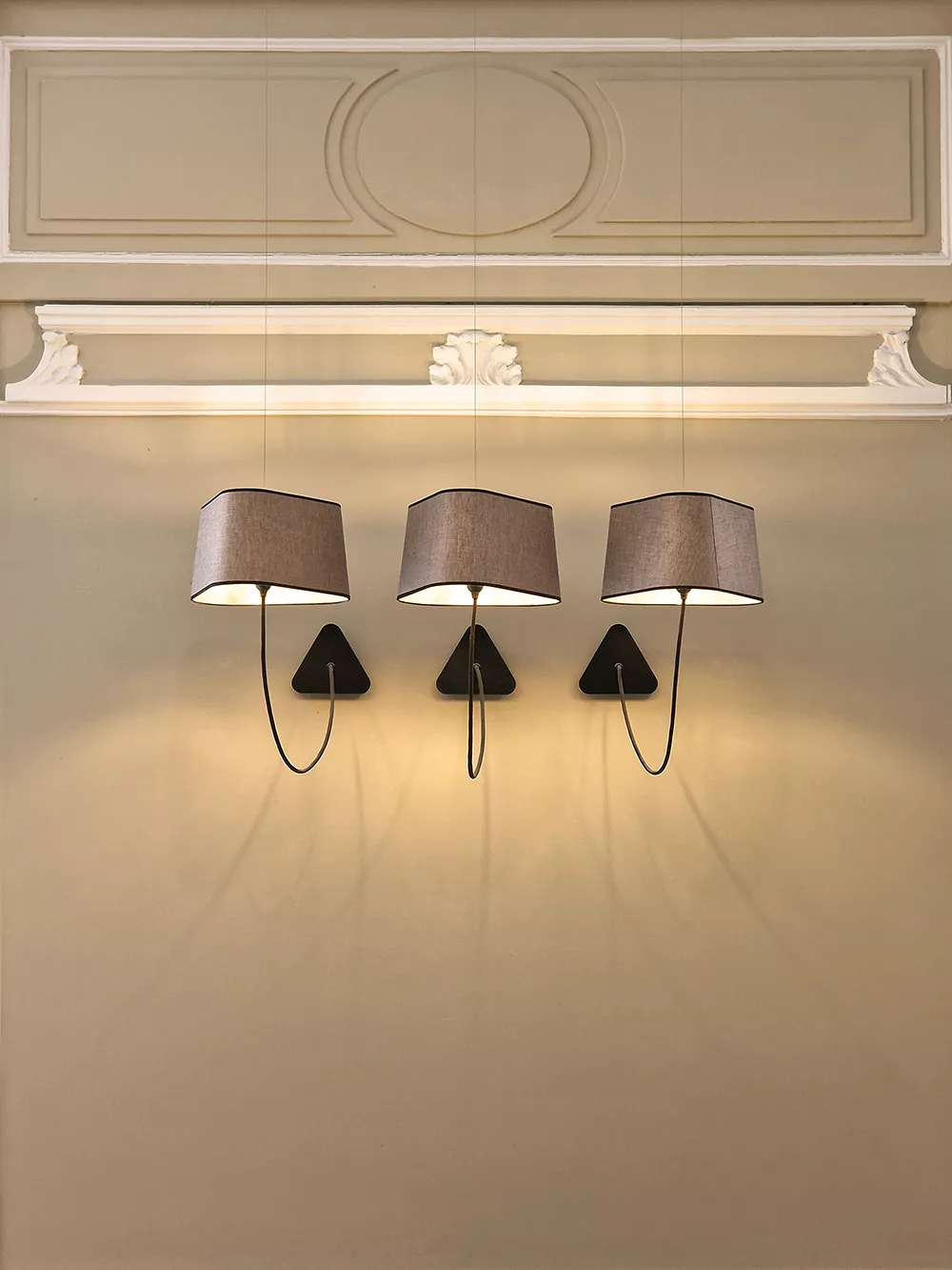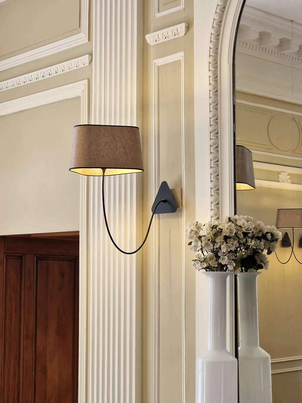 The decoration of the property combines the historic and majestic dimensions of the place with a modern and comfortable layout that adopts the classic codes of a chateau: The Nuage collection, with its rounded triangular shades, reinterprets the historic shape of forged chandeliers but uses lighter materials such as fabric and its electric textile cords to give it an aerial line.