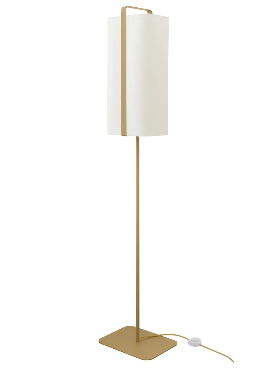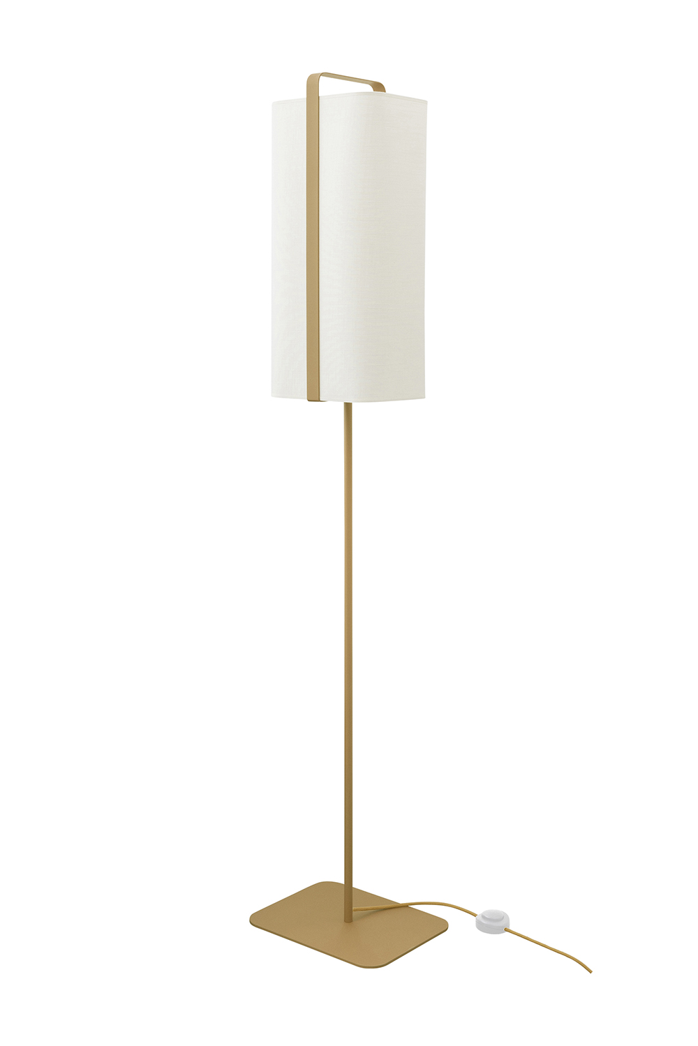 Le lampadaire Twiggy réinvente l’équilibre entre matière et structure, offrant une présence aussi sculpturale que fonctionnelle. L'abat-jour en tissu blanc diffusant semble flotter à l’intérieur du cadre en acier pailleté doré arrondi, créant une illusion de légèreté et de mouvement. Chaque angle de vue révèle une nouvelle perspective, transformant la lumière en une oeuvre subtile et moderne.