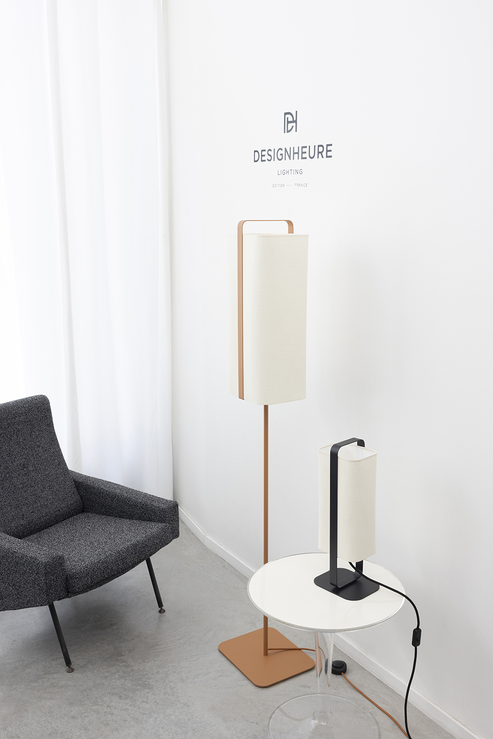 Pour cette collection au design élancé, DESIGNHEURE met en valeur la matière textile, qui est au coeur de son identité de marque : les abat-jours sont mis en scène comme des tableaux, encadrés d’une fine armature en acier. La ligne allongée de Twiggy et son halo lumineux tamisé évoquent la lueur d’une bougie : une lumière douce et apaisante.