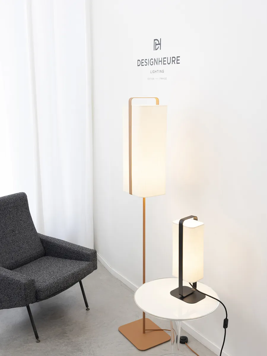 Pour cette collection au design élancé, DESIGNHEURE met en valeur la matière textile, qui est au coeur de son identité de marque : les abat-jours sont mis en scène comme des tableaux, encadrés d’une fine armature en acier. La ligne allongée de Twiggy et son halo lumineux tamisé évoquent la lueur d’une bougie : une lumière douce et apaisante.