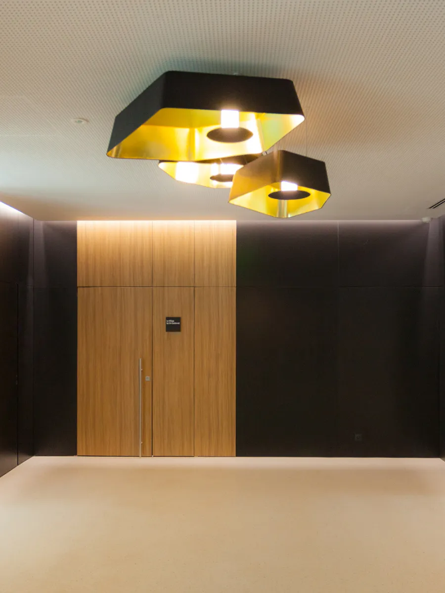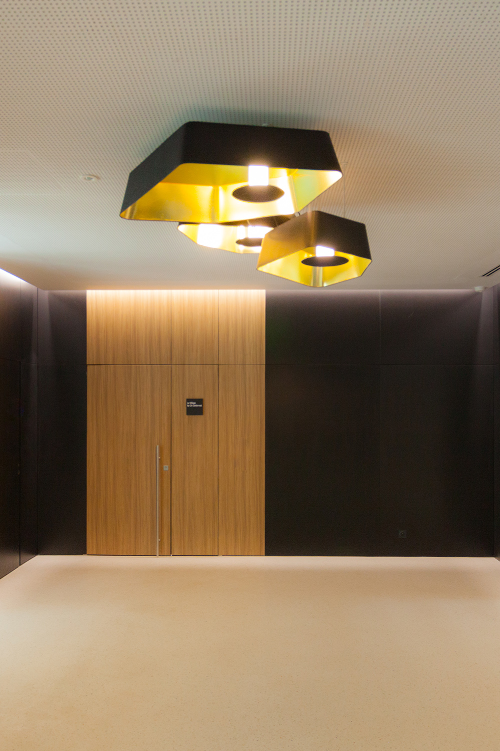 Véritable scénographie lumineuse, le plafonnier Nénuphar habille de manière fascinante les plafonds en jouant tout à la fois le rôle d’une sculpture, d’un plafond acoustique et d’un luminaire. Le plafonnier Petit Nénuphar est idéal pour décorer les plafonds relativement bas. L’abat-jour orientable à 360°, laisse une grande part de créativité pour décorer vos intérieurs. Équipé d’une source lumineuse LED discrète diffusant la lumière en rétroéclairage indirect, son abat-jour géométrique et arrondi en tissu, noir à l’extérieur et or à l’intérieur, permet d’apporter une touche décorative architecturale et précieuse, comme un bijou, à votre aménagement.