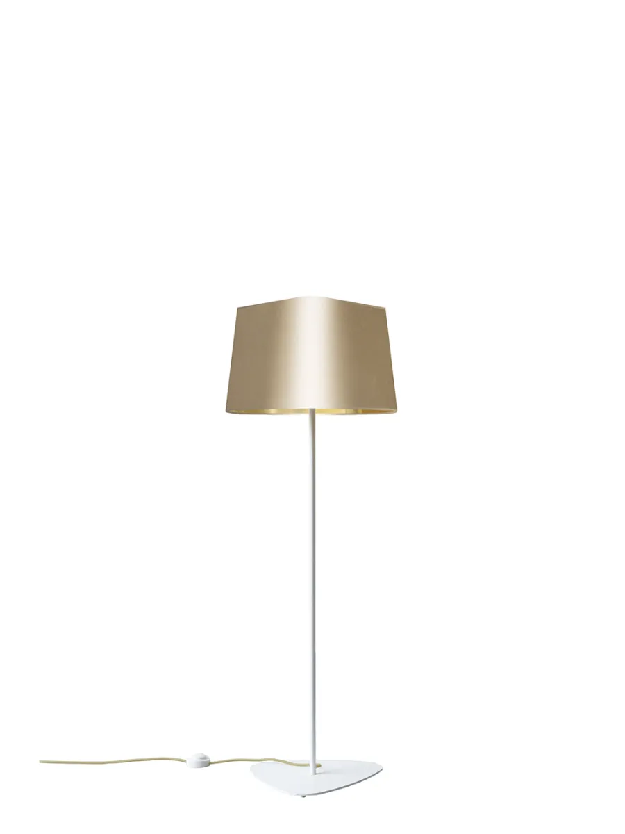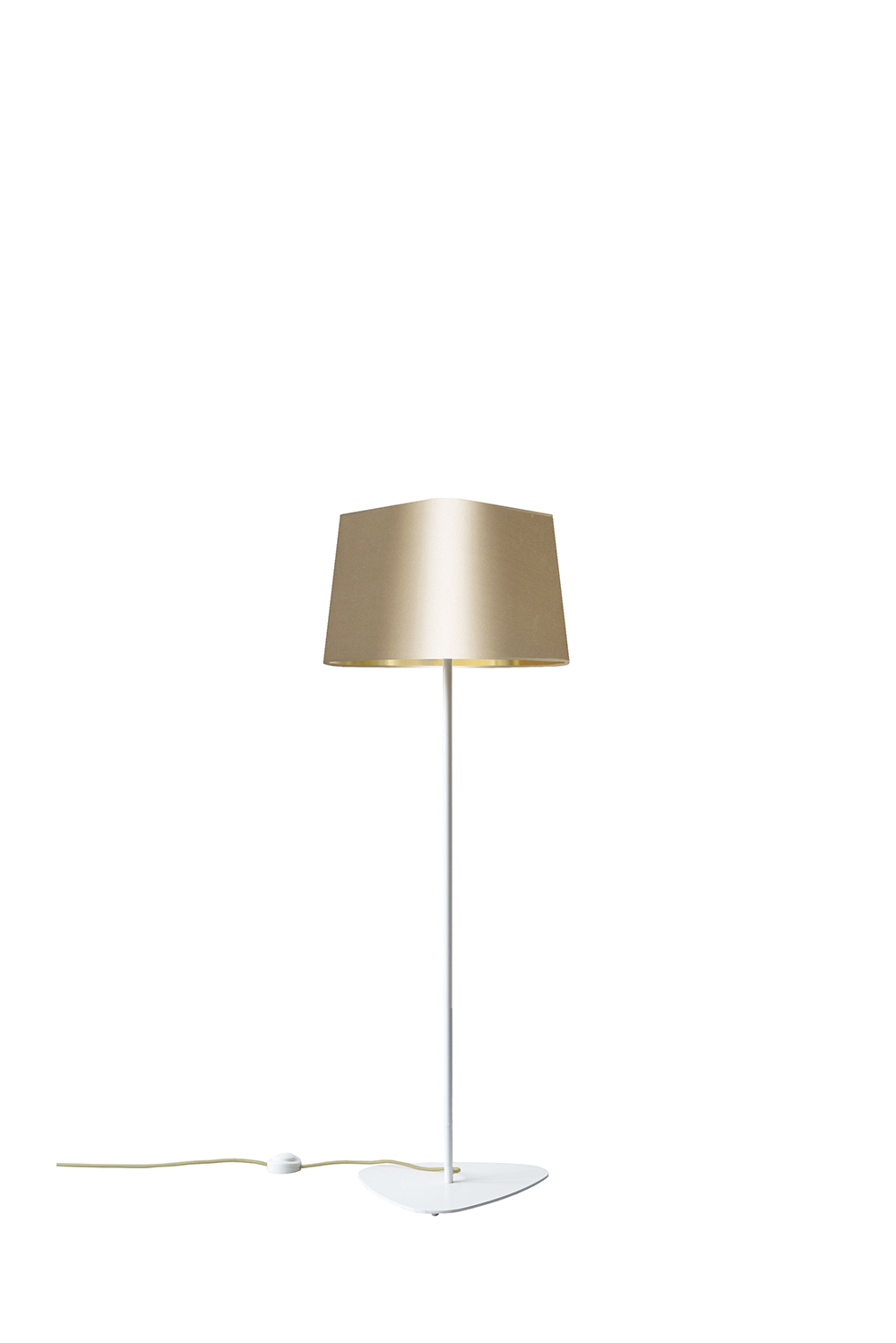 La collection Nuage, dont l’abat-jour triangulaire et arrondi s’apparente à la proue d’un bateau, a un design intemporel et universel. Nuage est la collection best-seller de DESIGNHEURE, grâce à sa très grande adaptabilité et ses nombreuses déclinaisons de modèles. Le lampadaire Grand Nuage, mesurant 1m22 de haut, est idéal en éclairage complémentaire d’ambiance dans une chambre ou un salon. Son éclairage apporte une lumière bien particulière, découpant l’espace de façon architecturale. Il se compose d’un abat-jour en tissu beige satiné à l’extérieur et doré à l’intérieur, d’un cordon électrique en textile doré, d’un piètement triangulaire et d’un tube en acier blanc laqué. La simplicité et la pureté des lignes de son apparence apportent élégance et légèreté à vos intérieurs.