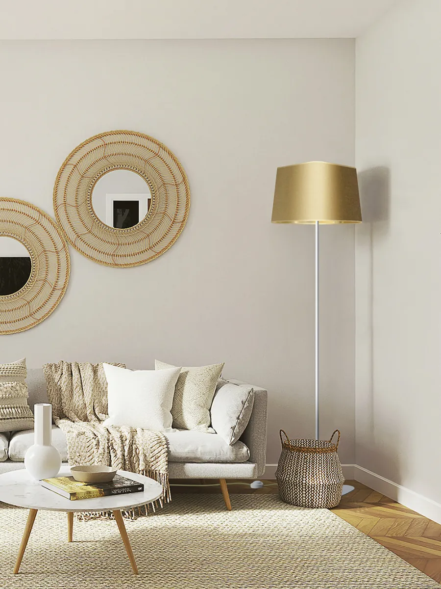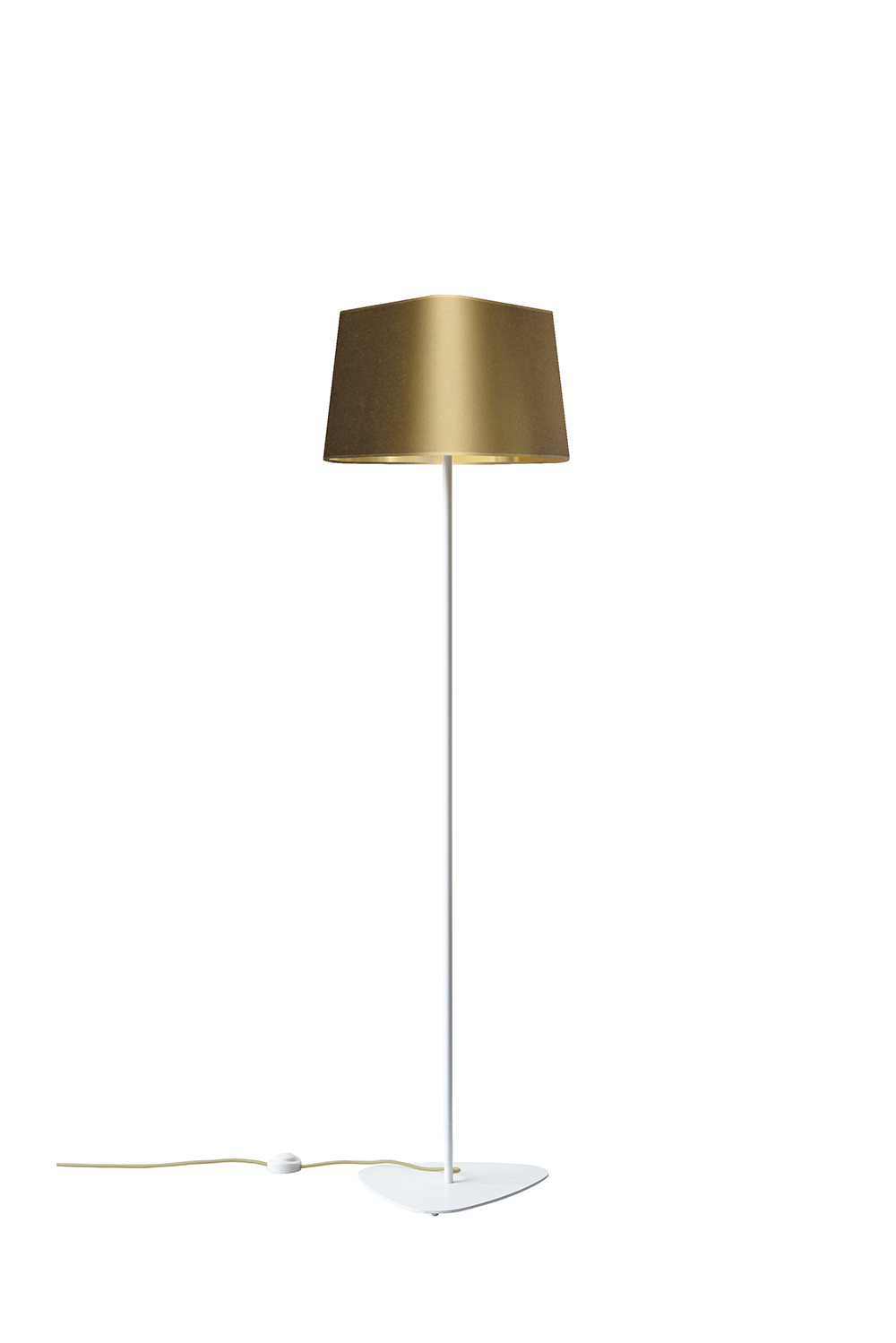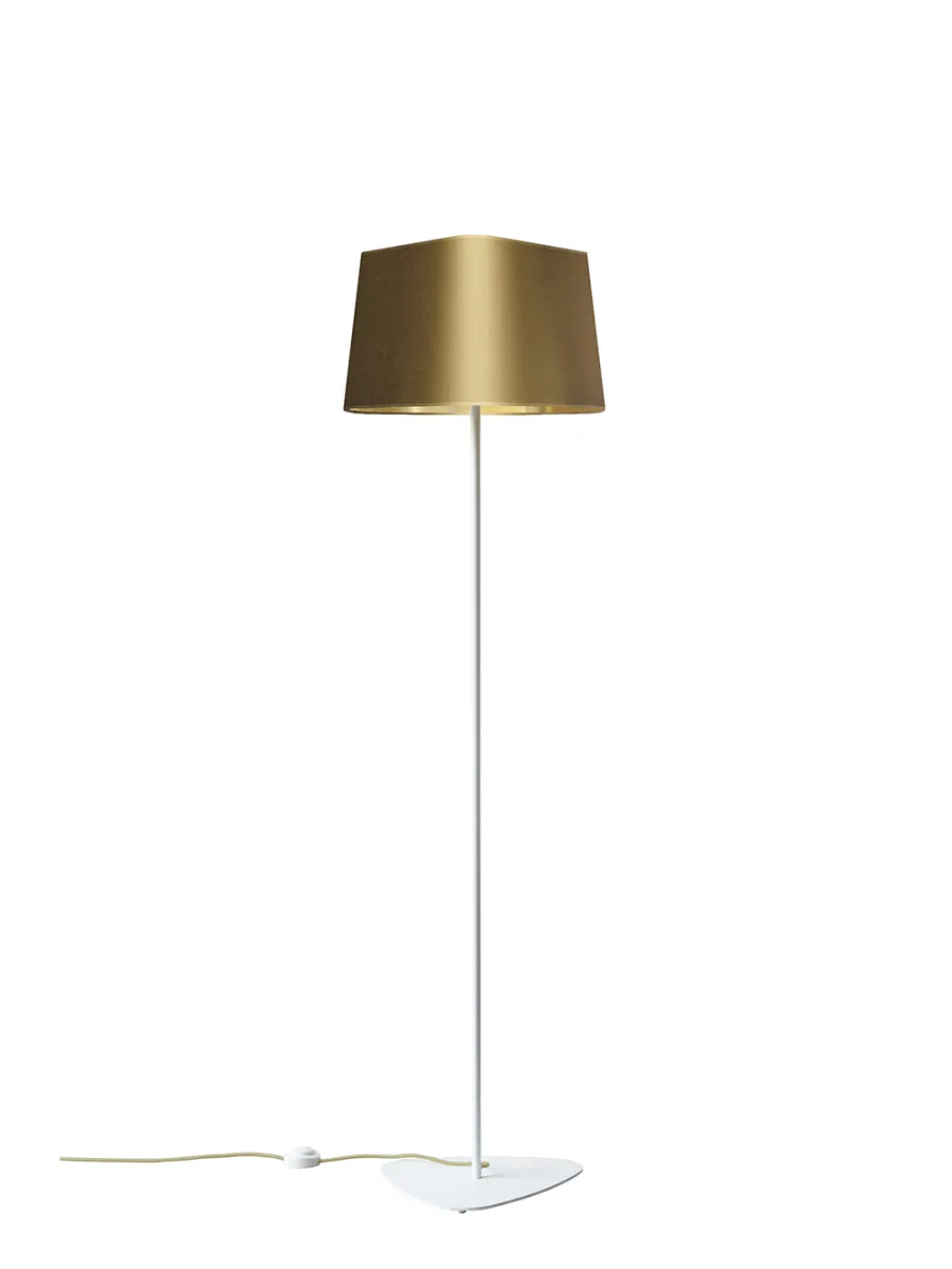 La collection Nuage, dont l’abat-jour triangulaire et arrondi s’apparente à la proue d’un bateau, a un design intemporel et universel. Nuage est la collection best-seller de DESIGNHEURE, grâce à sa très grande adaptabilité et ses nombreuses déclinaisons de modèles. Le lampadaire Grand Nuage, mesurant 1m62 de haut, est idéal en éclairage complémentaire d’ambiance dans une chambre ou un salon. Son éclairage apporte une lumière bien particulière, découpant l’espace de façon architecturale. Il se compose d’un abat-jour en tissu satiné doré à l’extérieur et doré à l’intérieur, d’un cordon électrique en textile doré, d’un piètement triangulaire et d’un tube en acier blanc laqué. La simplicité et la pureté des lignes de son apparence apportent élégance et légèreté à vos intérieurs.