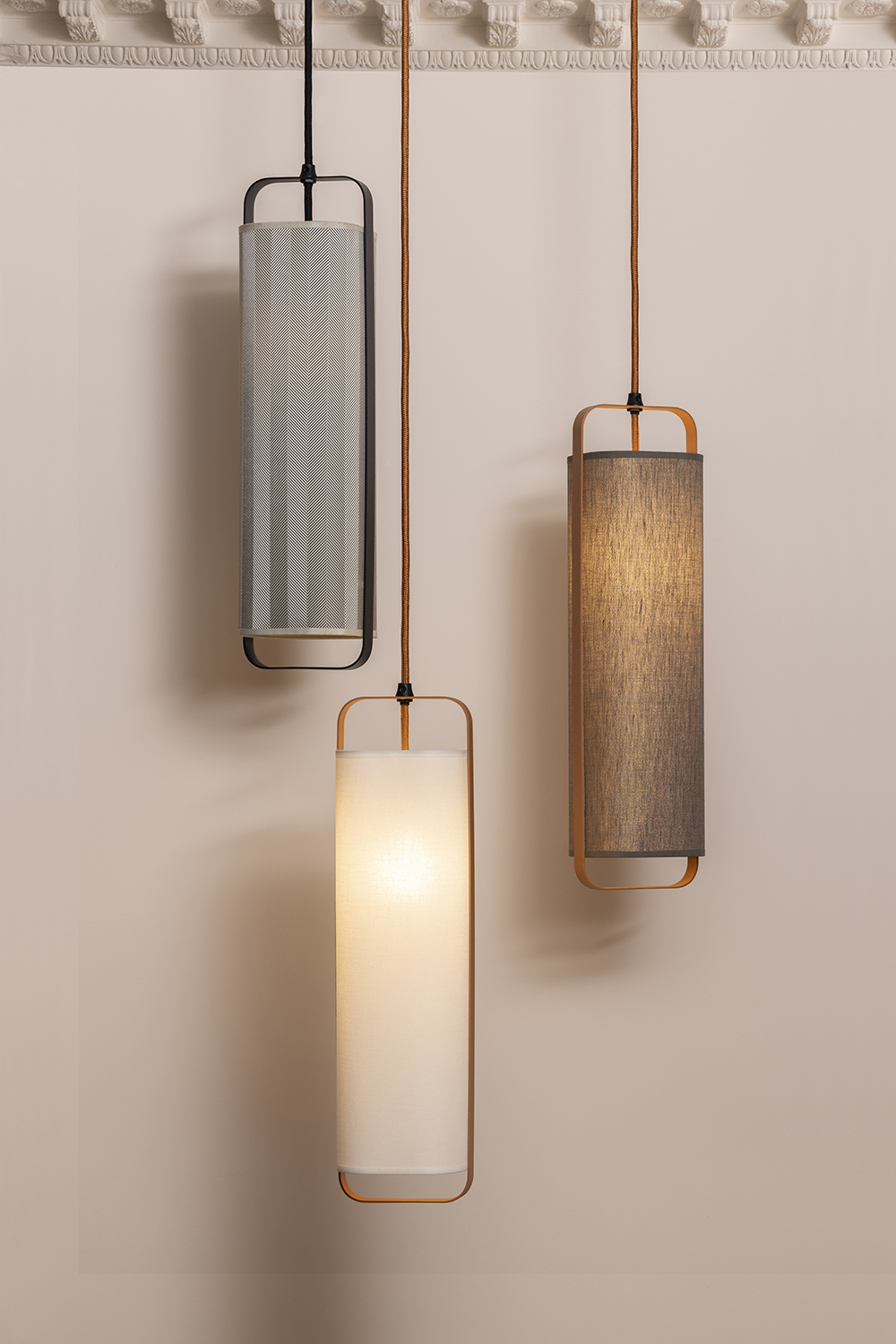 Pour cette collection au design élancé, DESIGNHEURE met en valeur la matière textile, qui est au coeur de son identité de marque : les abat-jours sont mis en scène comme des tableaux, encadrés d’une fine armature en acier. La ligne allongée de Twiggy et son halo lumineux tamisé évoquent la lueur d’une bougie : une lumière douce et apaisante.